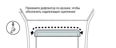 автомобиля перед передним краем самого люка. Округлая, изогнутая вверх форма обладает способностью перенаправлять воздух, так, что он течет вверх и над отверстием в крыше вместо того, чтобы попадать в транспортное средство. Благодаря своей форме, большинство дефлекторов закрывают примерно 7-15 см открытого люка и эффективно блокируют солнечные лучи, которые обычно бьют прямо в глаза.