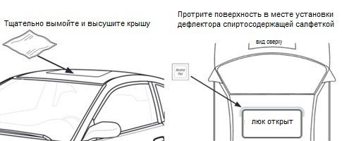 В основном, производители поставляют дефлекторы с лентой уже нанесенной на него - так что вам нужно только почистить крышу и приклеить дефлектор вокруг люка. Мы работали с этой лентой, и мы можем сказать, что её очень легко использовать, учитывая, насколько она эффективна. Также хотим отметить, что многие производители автомобилей используют 3М скотч на своих сборочных линиях.