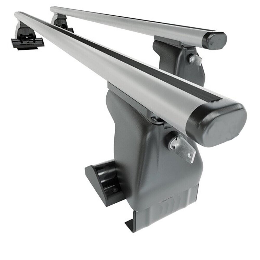 В комплект входит две поперечины и четыре опоры, для установки на автомобили без рейлингов и штатных монтажных мест. Металлические скобы, в основании опор, маркируются под каждую группу автомобилей D1-D7 имеют разную длину и изгиб, для лучшей совместимости и позволяют закрепить их за дверной проем. Резиновые прокладки закрепленные на скобах не дадут оставить царапины при эксплуатации багажника.Собранная конструкция крепко держится и позволяет перевозить грузы весом не больше 75 кг.