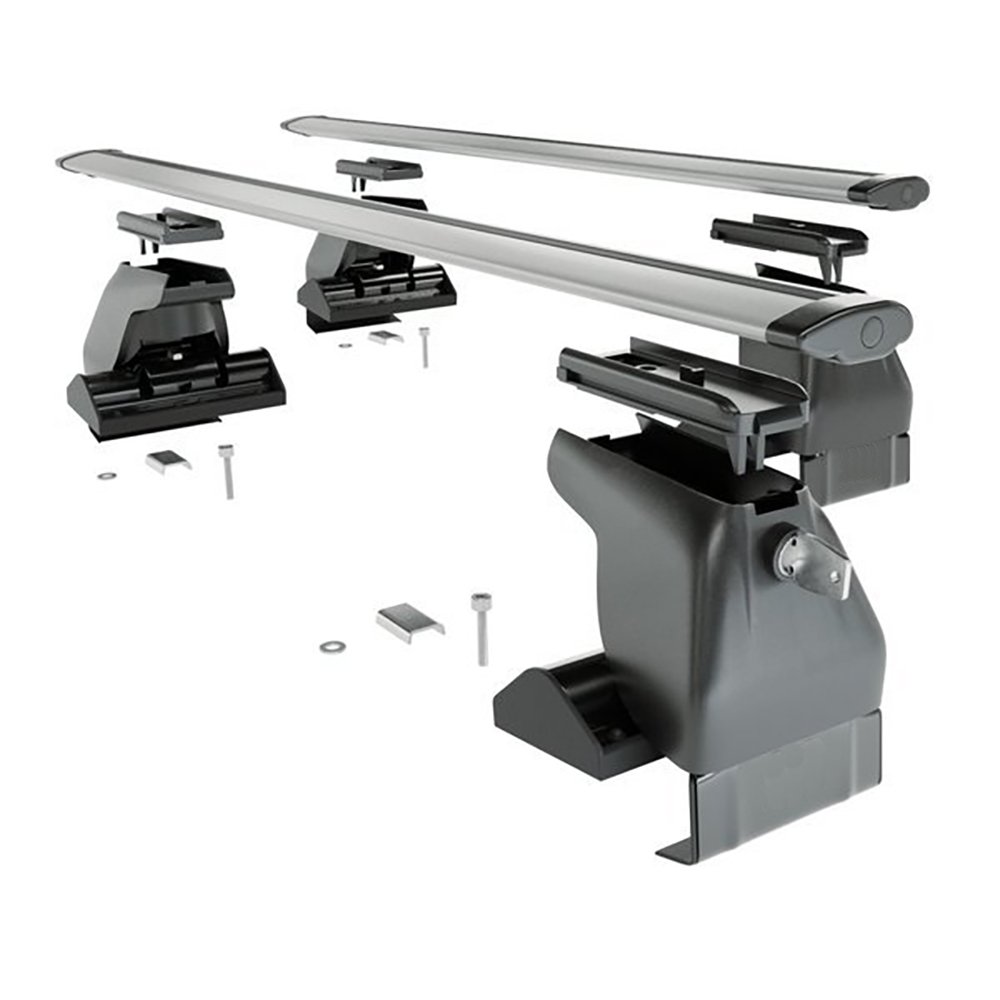 В комплект входит две поперечины и четыре опоры, для установки на автомобили без рейлингов и штатных монтажных мест. Металлические скобы, в основании опор, маркируются под каждую группу автомобилей D1-D7 имеют разную длину и изгиб, для лучшей совместимости и позволяют закрепить их за дверной проем. Резиновые прокладки закрепленные на скобах не дадут оставить царапины при эксплуатации багажника.Собранная конструкция крепко держится и позволяет перевозить грузы весом не больше 75 кг.