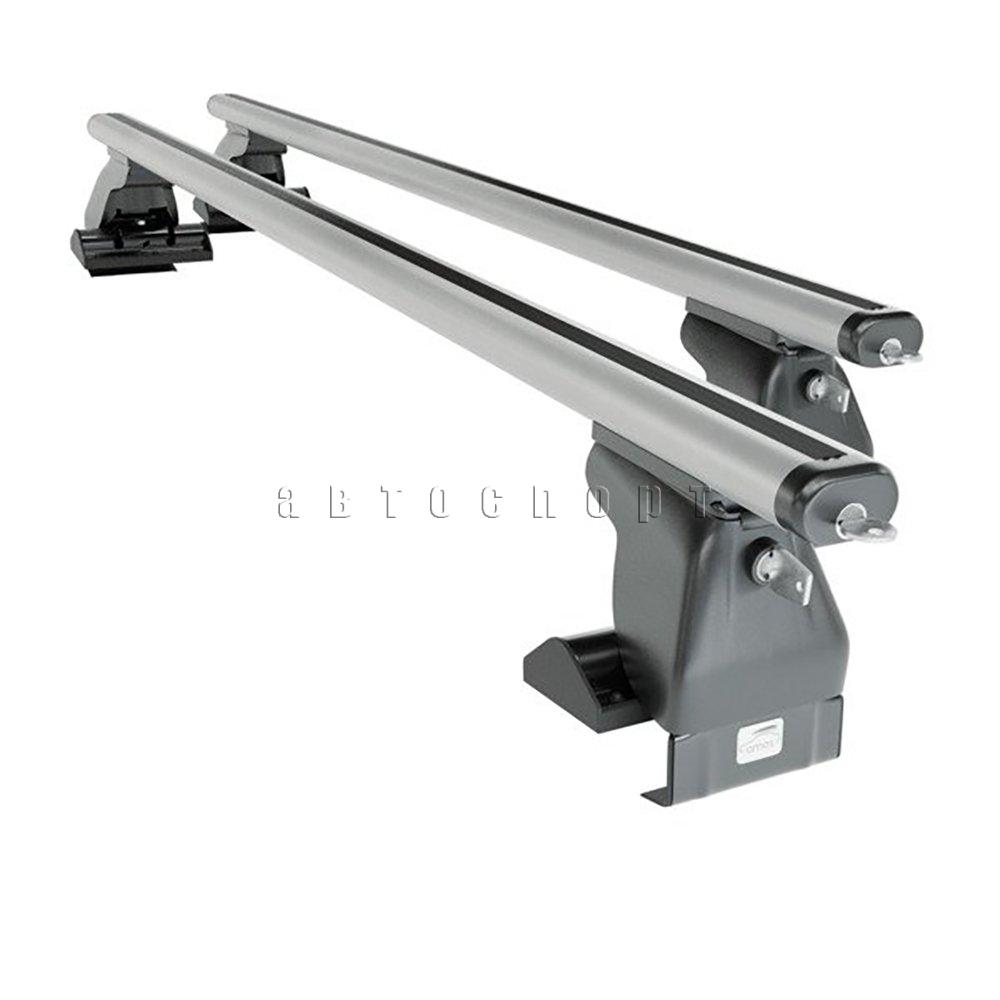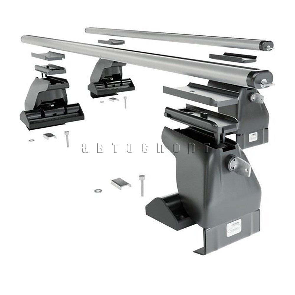 В комплект входит две поперечины и четыре опоры, для установки на автомобили без рейлингов и штатных монтажных мест. Металлические скобы, в основании опор, маркируются под каждую группу автомобилей D1-D7 имеют разную длину и изгиб, для лучшей совместимости и позволяют закрепить их за дверной проем. Резиновые прокладки закрепленные на скобах не дадут оставить царапины при эксплуатации багажника.Собранная конструкция крепко держится и позволяет перевозить грузы весом не больше 75 кг.