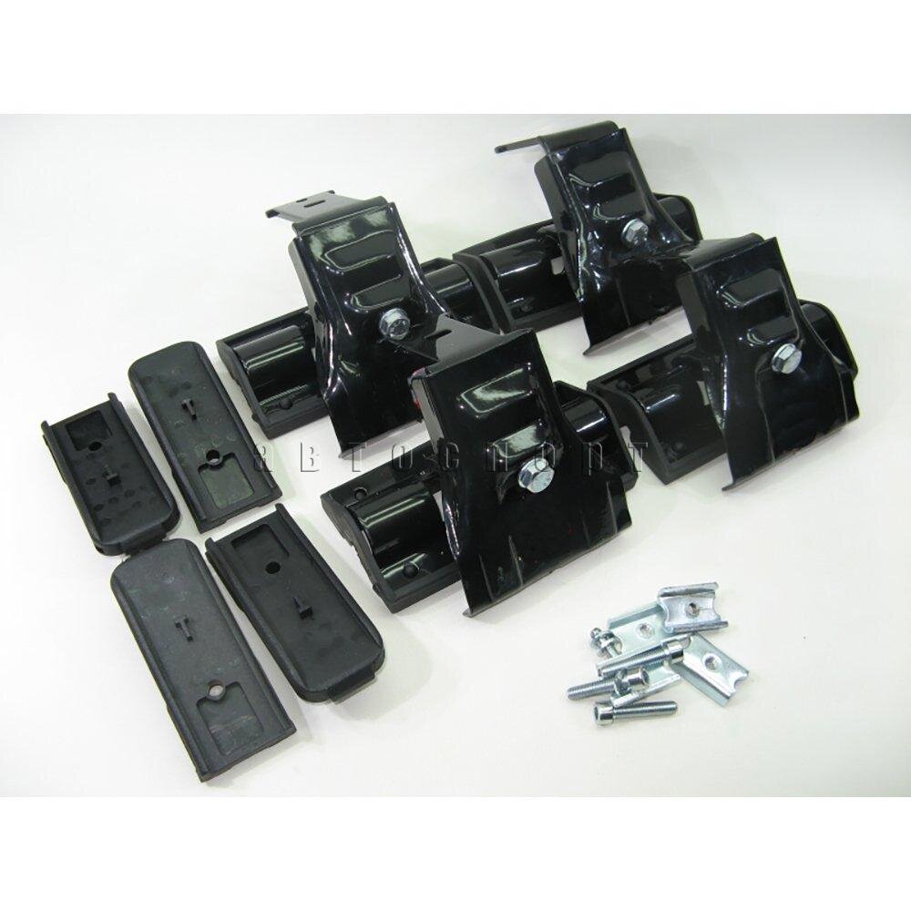 В комплект входит две поперечины и четыре опоры, для установки на автомобили без рейлингов и штатных монтажных мест. Металлические скобы, в основании опор, маркируются под каждую группу автомобилей D1-D7 имеют разную длину и изгиб, для лучшей совместимости и позволяют закрепить их за дверной проем. Резиновые прокладки закрепленные на скобах не дадут оставить царапины при эксплуатации багажника.Собранная конструкция крепко держится и позволяет перевозить грузы весом не больше 75 кг.