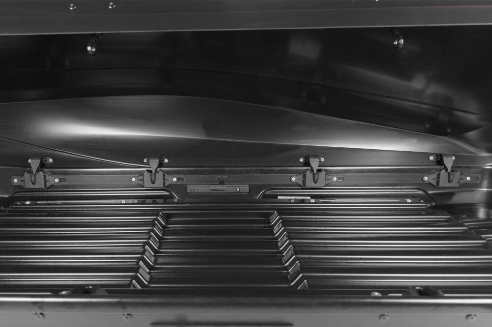 - Усиленная структура дна обеспечивает высокую грузоподъёмность бокса и надежность при движении.