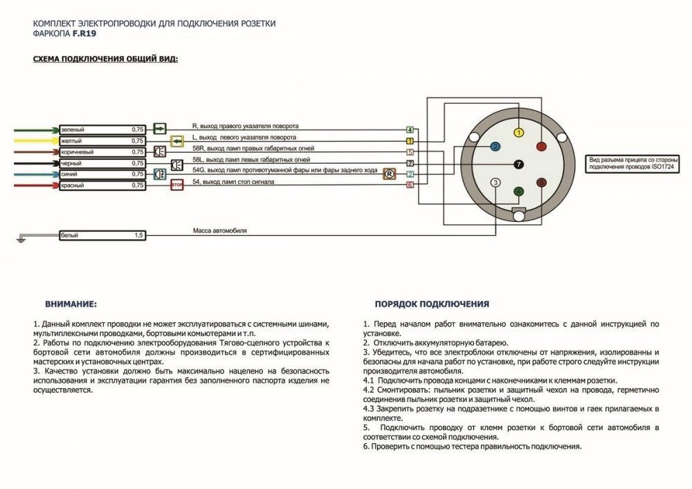 Электрика - резетка 7-pin + электропроводка 1,9 метра