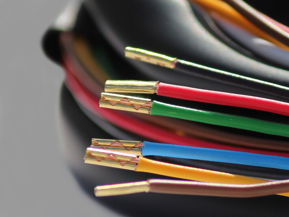 Сечение проводников: Выходные сигналы: 6 проводов 0,5мм2 (красный, синий, желтый, зеленый, коричневый, черный) длина -1,6м, 1 проводник 1,5мм2 (белый) длина -1,6м, Входные сигналы:6 проводов 0,35мм2 (красный, синий, желтый, зеленый, коричневый, черный) Питание: 1 проводник 1,5мм2(красный) длина - 4,5м.
