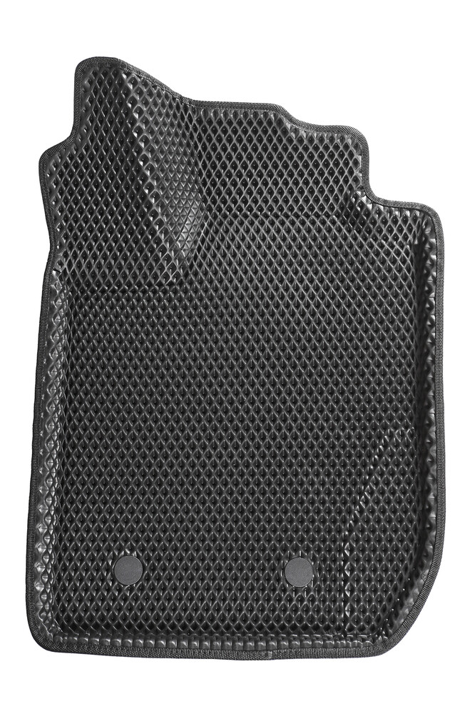 Двухслойные коврики ЕВА 3Д «Ромб» состоят из верхнего слоя EVA и нижнего текстильного слоя, зацепляющегося за ковролин автомобиля, дополнительно имеются крепежные клипсы
