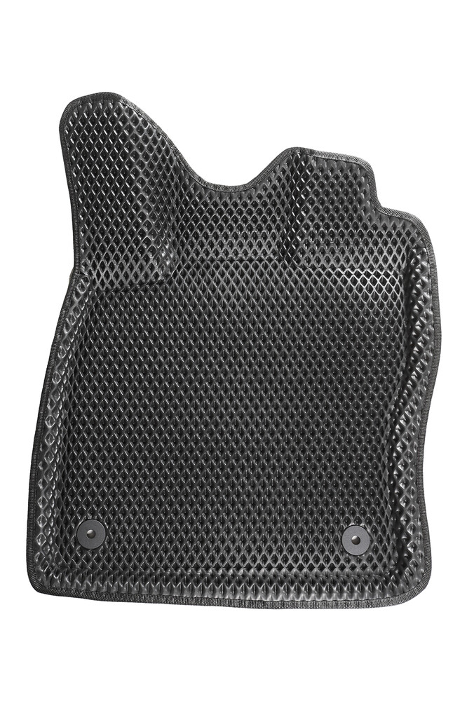 Двухслойные коврики ЕВА 3Д «Ромб» состоят из верхнего слоя EVA и нижнего текстильного слоя, зацепляющегося за ковролин автомобиля, дополнительно имеются крепежные клипсы