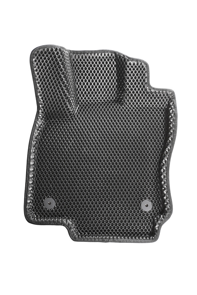Двухслойные коврики ЕВА 3Д «Ромб» состоят из верхнего слоя EVA и нижнего текстильного слоя, зацепляющегося за ковролин автомобиля, дополнительно имеются крепежные клипсы
