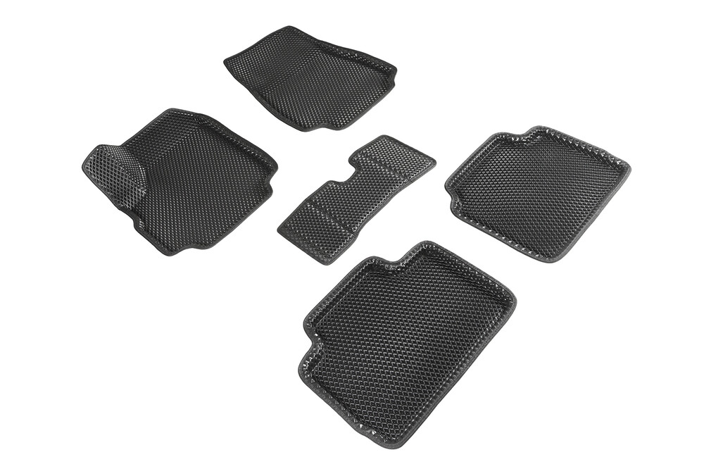 Двухслойные коврики ЕВА 3Д «Ромб» состоят из верхнего слоя EVA и нижнего текстильного слоя, зацепляющегося за ковролин автомобиля, дополнительно имеются крепежные клипсы
