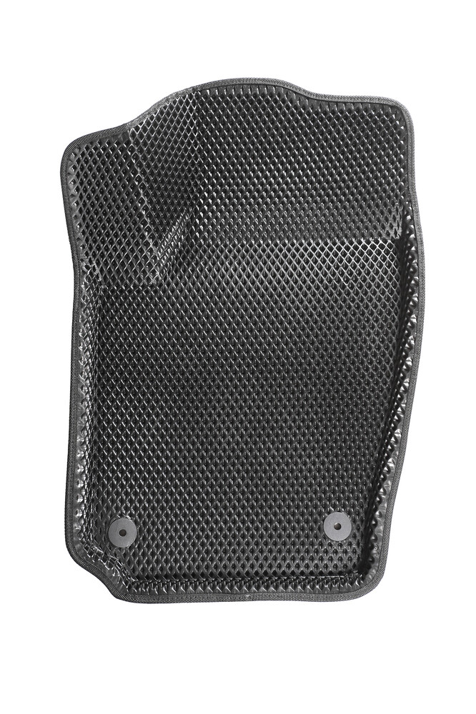 Двухслойные коврики ЕВА 3Д «Ромб» состоят из верхнего слоя EVA и нижнего текстильного слоя, зацепляющегося за ковролин автомобиля, дополнительно имеются крепежные клипсы