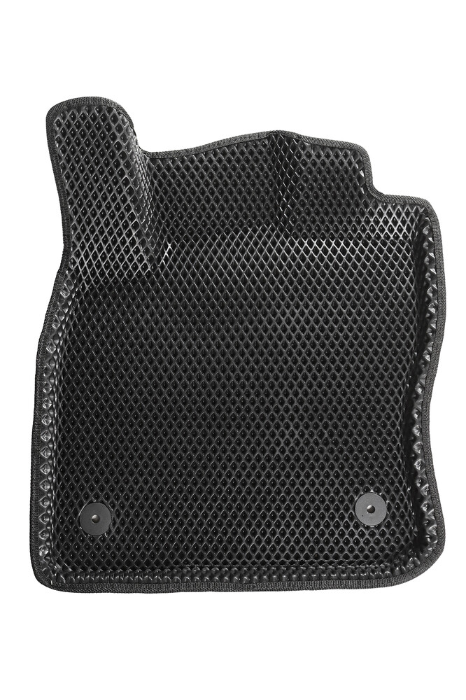 Двухслойные коврики ЕВА 3Д «Ромб» состоят из верхнего слоя EVA и нижнего текстильного слоя, зацепляющегося за ковролин автомобиля, дополнительно имеются крепежные клипсы