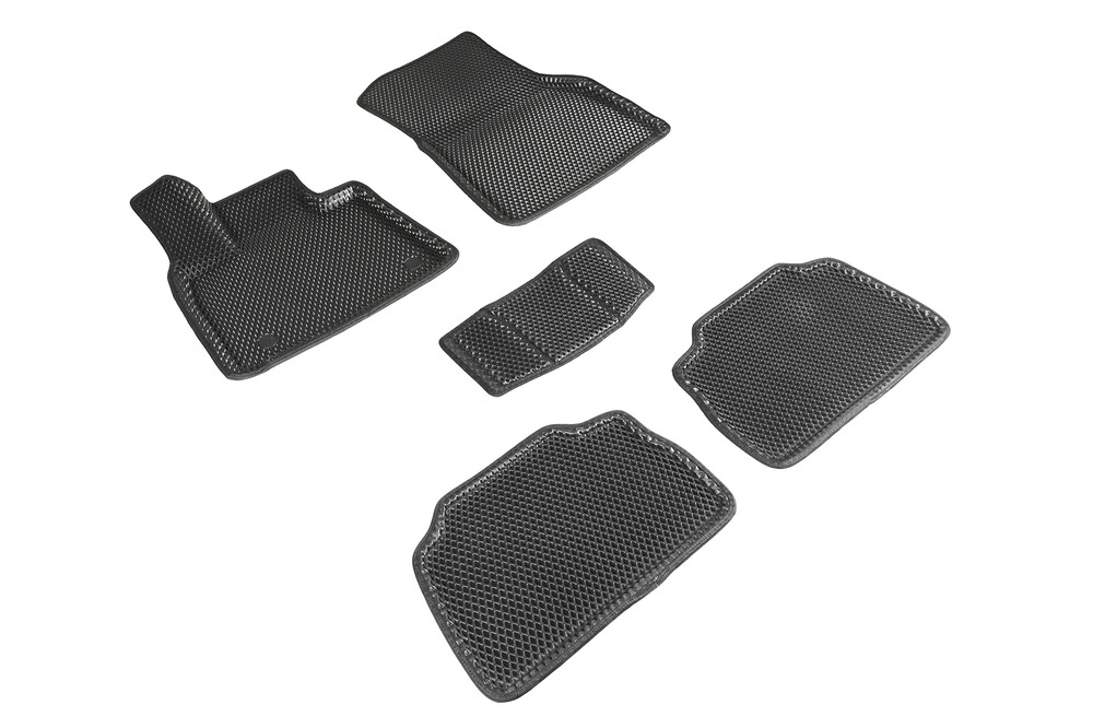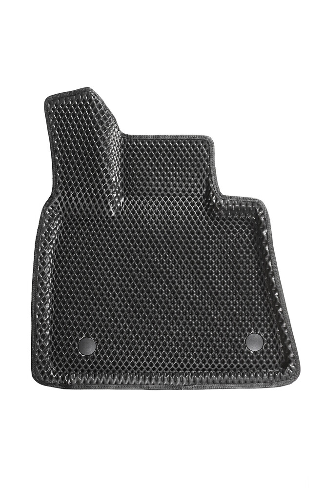 Двухслойные коврики ЕВА 3Д «Ромб» состоят из верхнего слоя EVA и нижнего текстильного слоя, зацепляющегося за ковролин автомобиля, дополнительно имеются крепежные клипсы