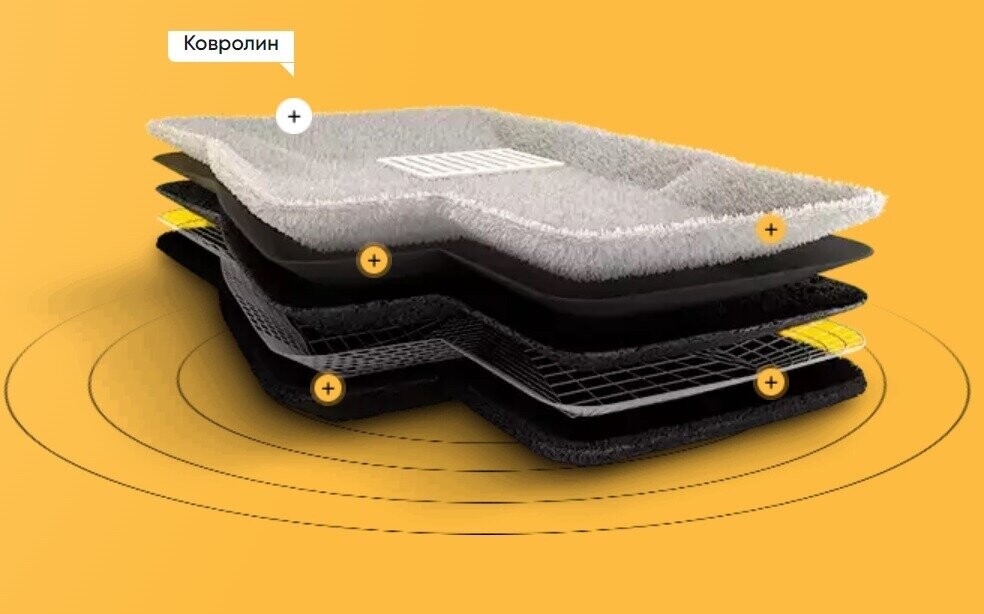 1-ый (верхний) слой - специальный прочный автоковролин. Быстро сохнет, легко моется;