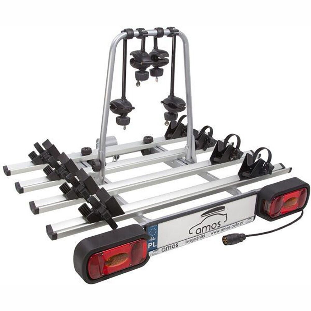 Amos (Польша) Платформа для 4-х велосипедов на фаркоп AMOS GIRO 4, алюминий/цвет серебристый