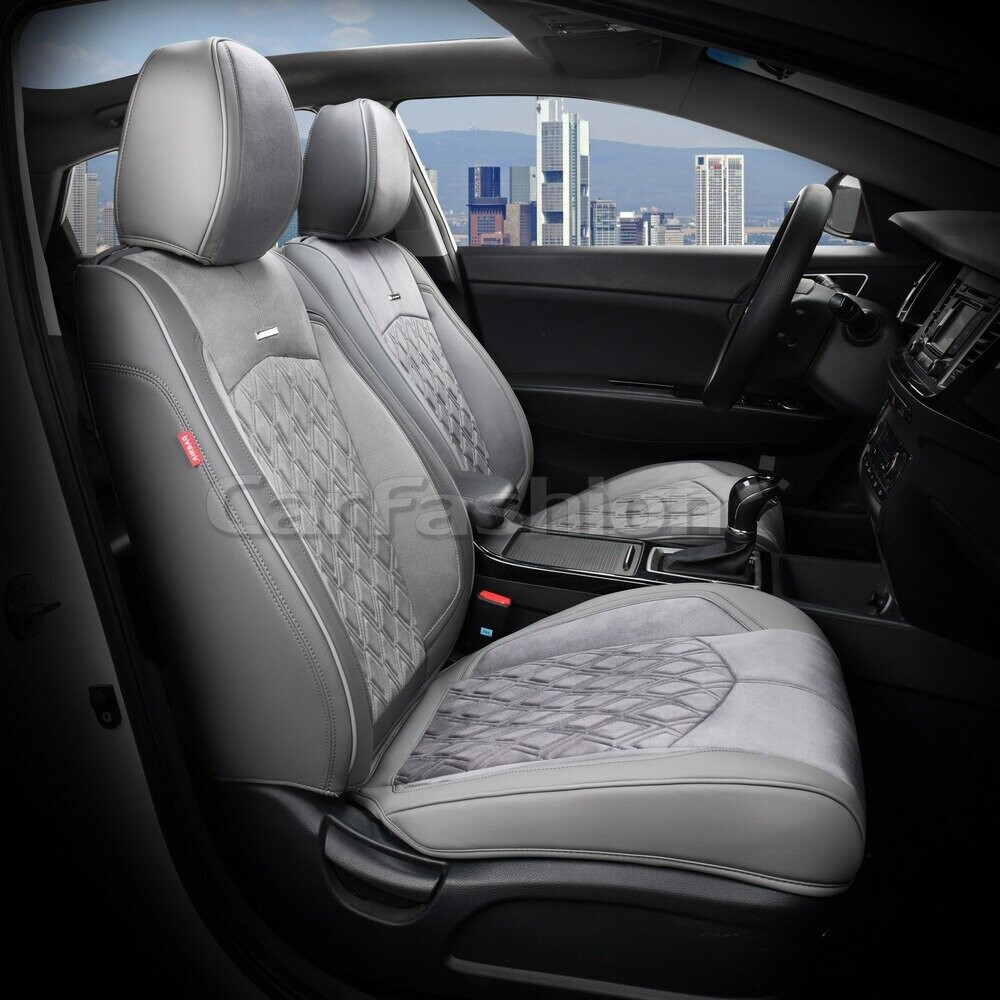 CarFashion (Россия) Каркасные чехлы фронт 5D «DIAMOND» т.серый/т.серый/серый 26034