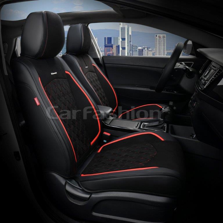 CarFashion (Россия) Каркасные чехлы фронт 5D «DIAMOND» черный/черный/красный 26028
