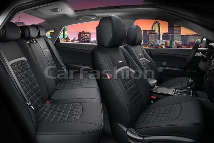 CarFashion (Россия) Комплект каркасных чехлов 5D из экокожи «BOOMERANG PLUS» серый/черный 27044