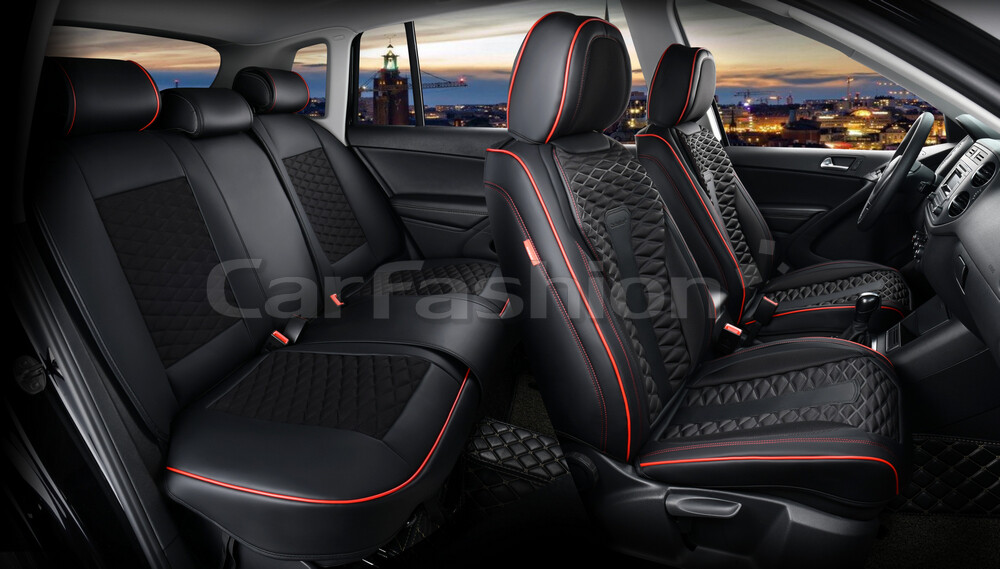 CarFashion (Россия) Комплект каркасных чехлов 5D «MERCURY PLUS» черный/черный/красный/красный 27231