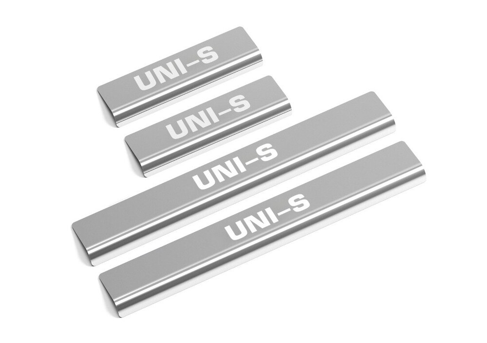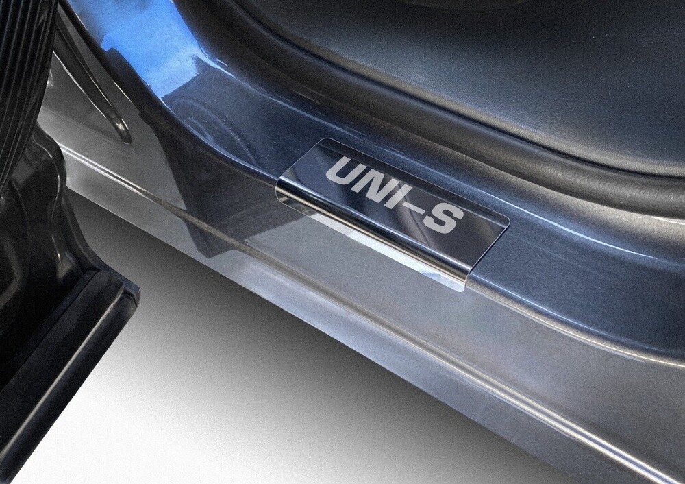 Накладки на пороги AutoMax для Changan UNI-S 2024-н.в., рынок РФ, нерж.сталь, с надписью, 4 шт., AMCHUNIS01.