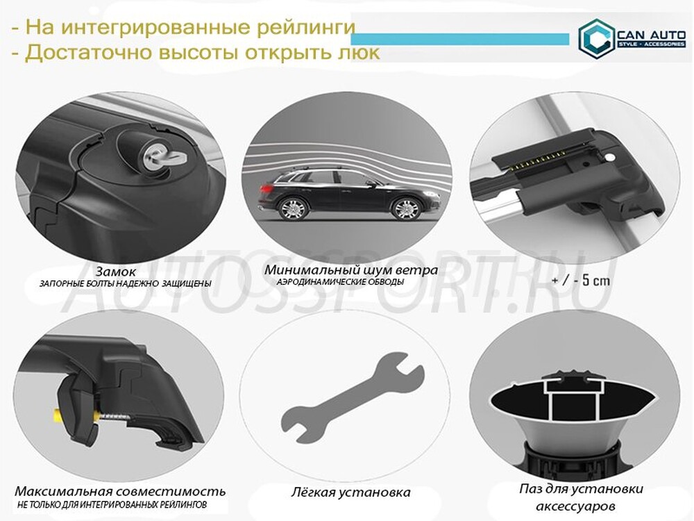 - Подходит для автомобилей с интегрированными рейлингами и не только
