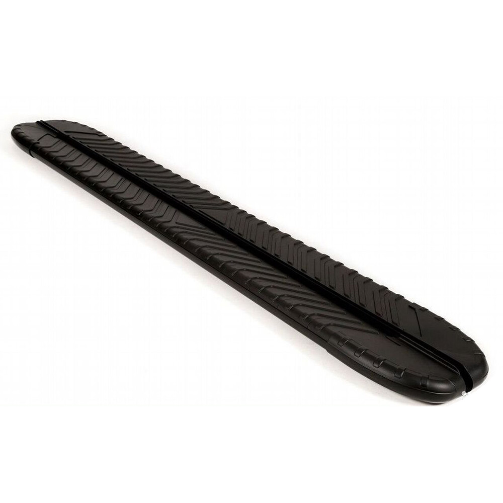 Поверхность с пластиковыми ребристыми накладками плавно обхватывают боковину порогов.