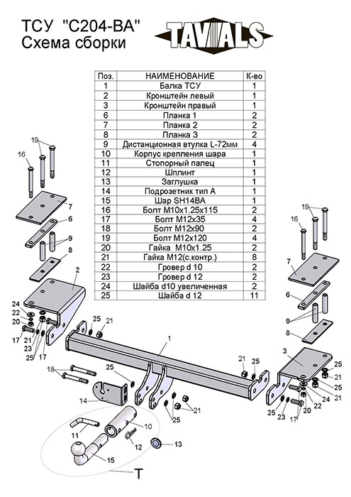 Конструкция фаркопа «TAVIALS» представляет собой разборный вариант, что позволяет экономить место при складировании , транспортировке и облегчает процесс монтажа.