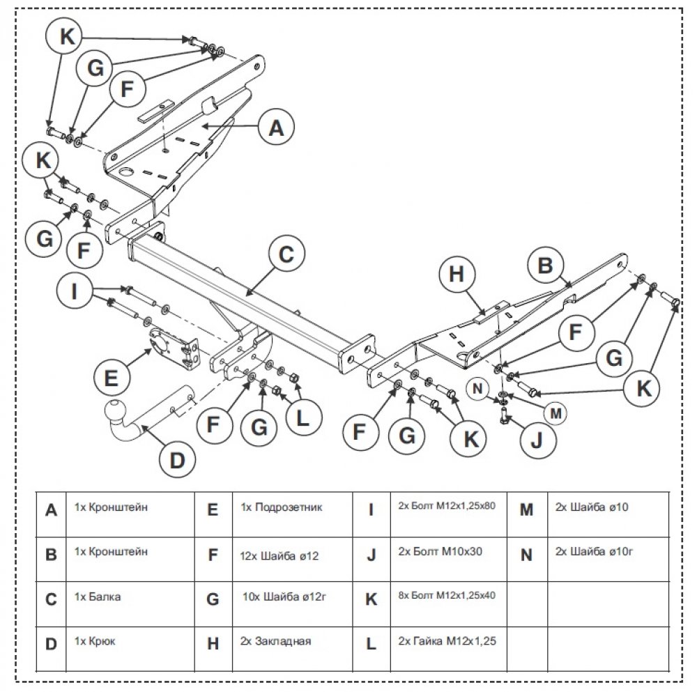 Sheriff (Россия) Фаркоп Mazda CX-9 2017- съемное крепление шара на двух болтах