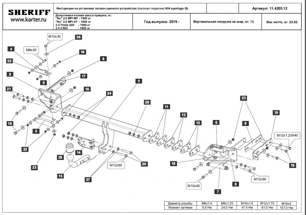 Sheriff (Россия) Фаркоп Kia Sportage рестайл 2018-2022 съемное крепление шара на двух болтах