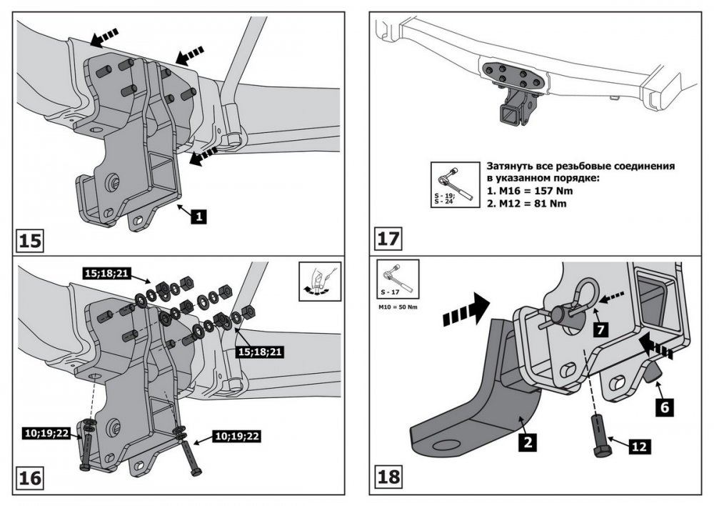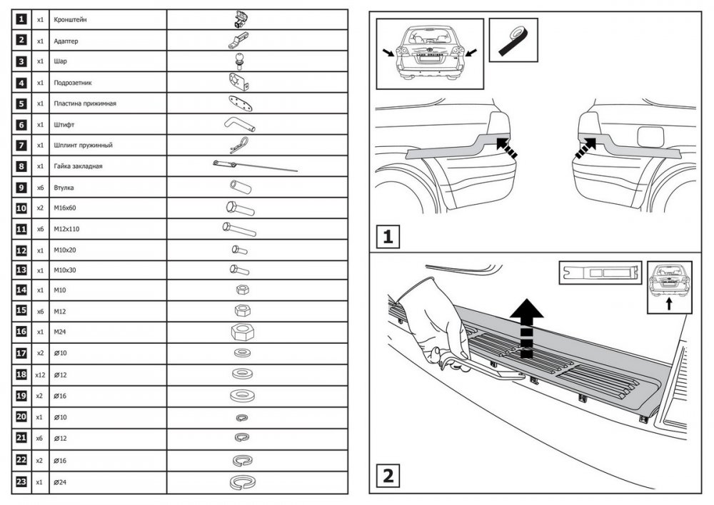 Фаркоп «Berg» под квадрат для Toyota Land Cruiser 200 (кроме Executive и TRD) 2007-2021, шар E, 2500/120 кг