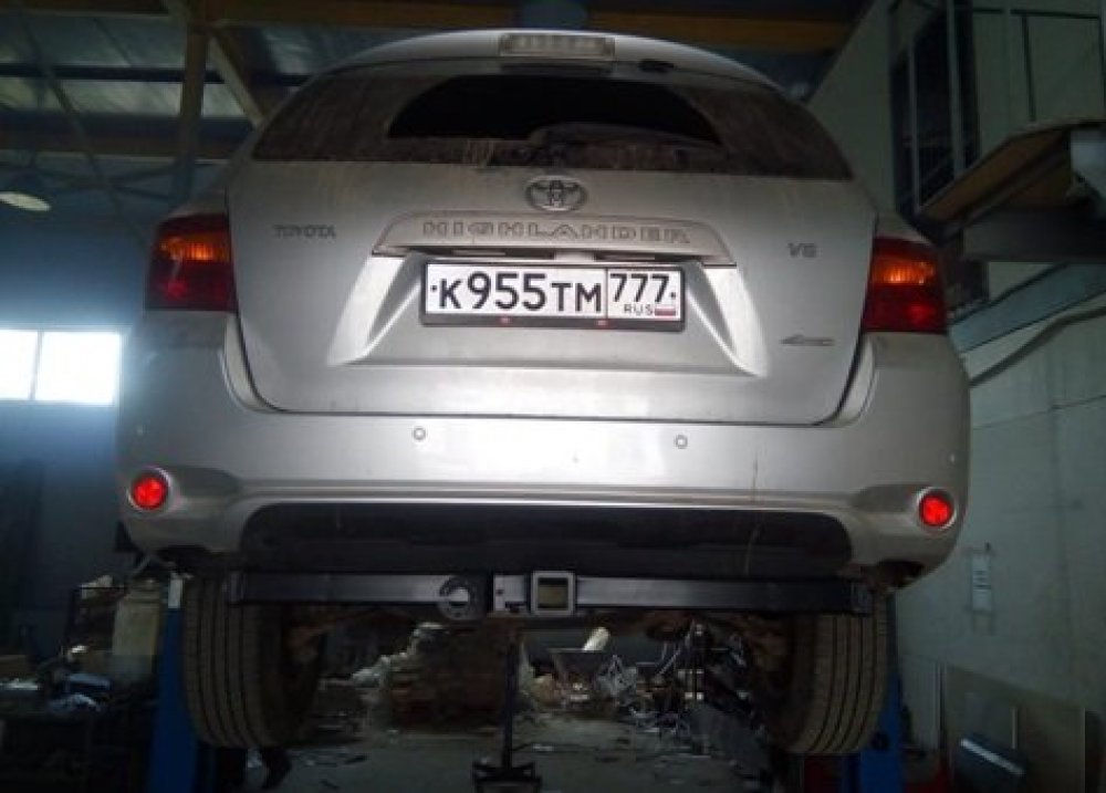 Фаркоп с хромированной накладкой Toyota Highlander 1 XU20-40 2003-2010, Lexus RX 300,350,400 2003-2009 съемное крепление шара под американский квадрат