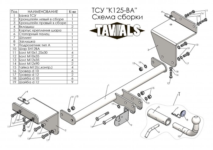 Конструкция фаркопа «TAVIALS» представляет собой разборный вариант, что позволяет экономить место при складировании, транспортировке и облегчает процесс монтажа.