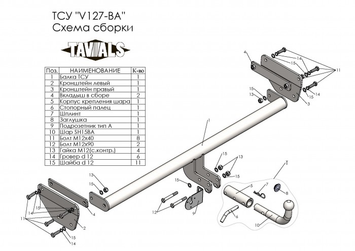 Конструкция фаркопа «TAVIALS» представляет собой разборный вариант, что позволяет экономить место при складировании, транспортировке и облегчает процесс монтажа.