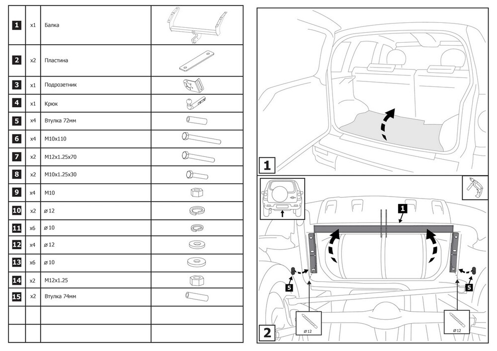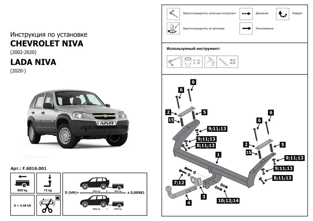 Фаркоп «Berg» для Lada Niva 2123 2020-2021, шар A, 1200/75 кг