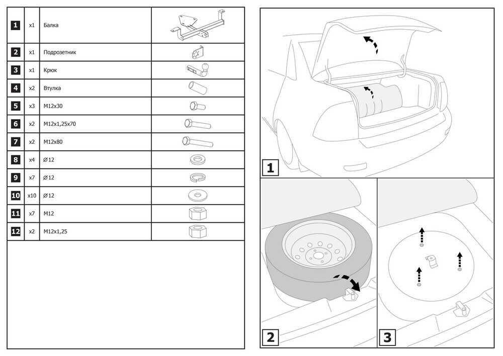 Фаркоп «Berg» для Lada Priora 2007-2018, шар A, 900/75 кг