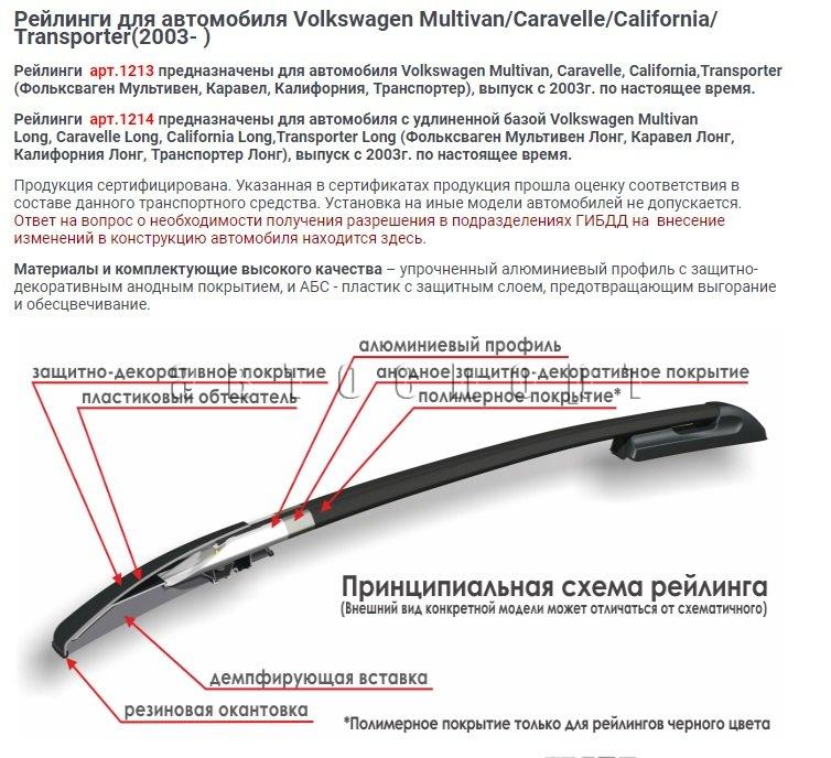(а)Рейлинги продольные VW T5 2015-н.в. серебристые (короткая база) "APS"