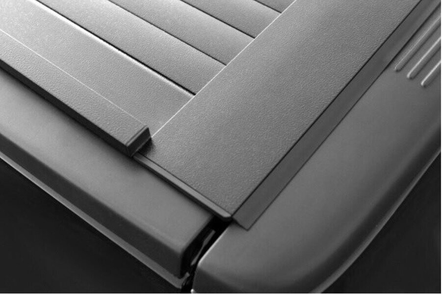 Rollbox покрытый порошковой краской алюминиевый корпус, скреплен запатентованной петлевой технологией, которая обеспечивает практически непроницаемый шов. Крышка роллета позволяет открываться или закрываться без каких-либо защелок задержек или больших усилий, вы просто тянете на себя для закрывания и отпускаете с фиксаторов если надо открыть, торсионная пружина позволяет легко открывать ее. Крышка может быть заблокирована в открытом положении на 1/4, 1/2 или 3/4. Гладкий внешний вид усиливается за счет низкопрофильной крышки корпуса с аэродинамическим дизайном.