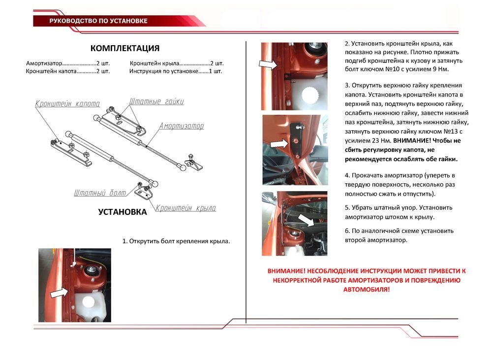 - Комплектация : амортизатор 2шт., инструкция по установке, кронштейны , крепеж.