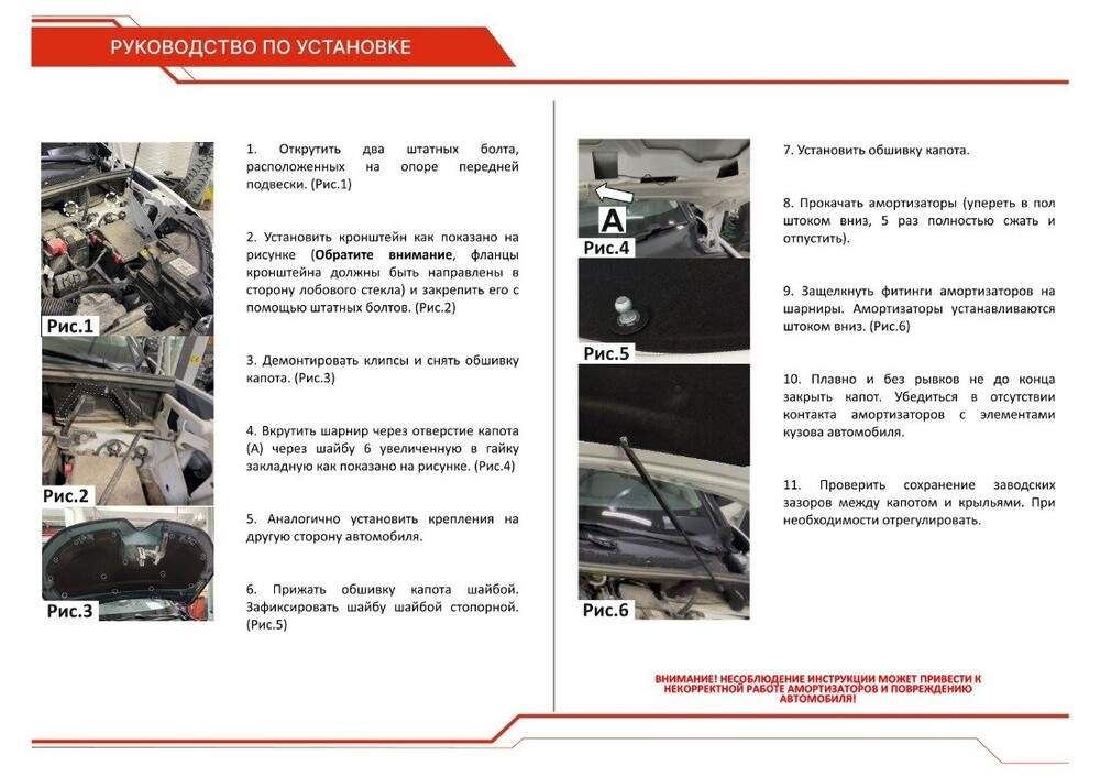 - Штатный угол открытия капота – благодаря индивидуальной разработке для каждого автомобиля.