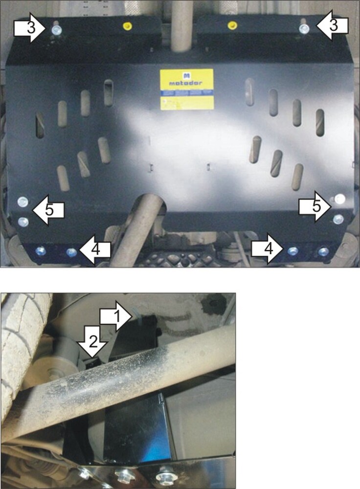 3. Установить на технологические отверстия кузова передние точки Защиты с помощью ПЗ 106х20х6 А85 М10, Болтов М10х30, Шайб 10 и Гроверов 10.\n