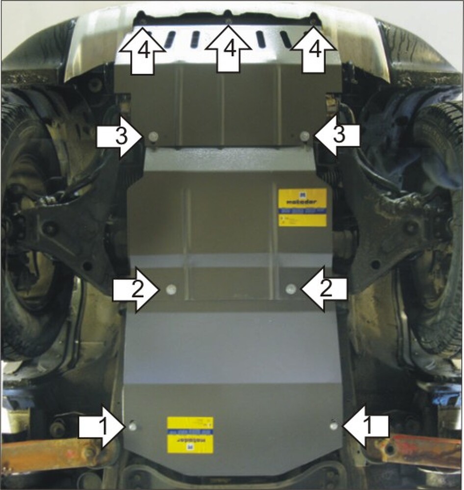 Защищаемые агрегаты: Двигатель, Коробка переключения передач, Радиатор, Передний дифференциал\n