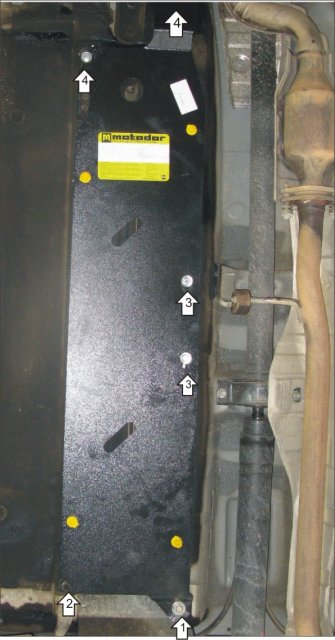 2. Правую заднюю точку Защиты установить на штатный болт в лонжероне.