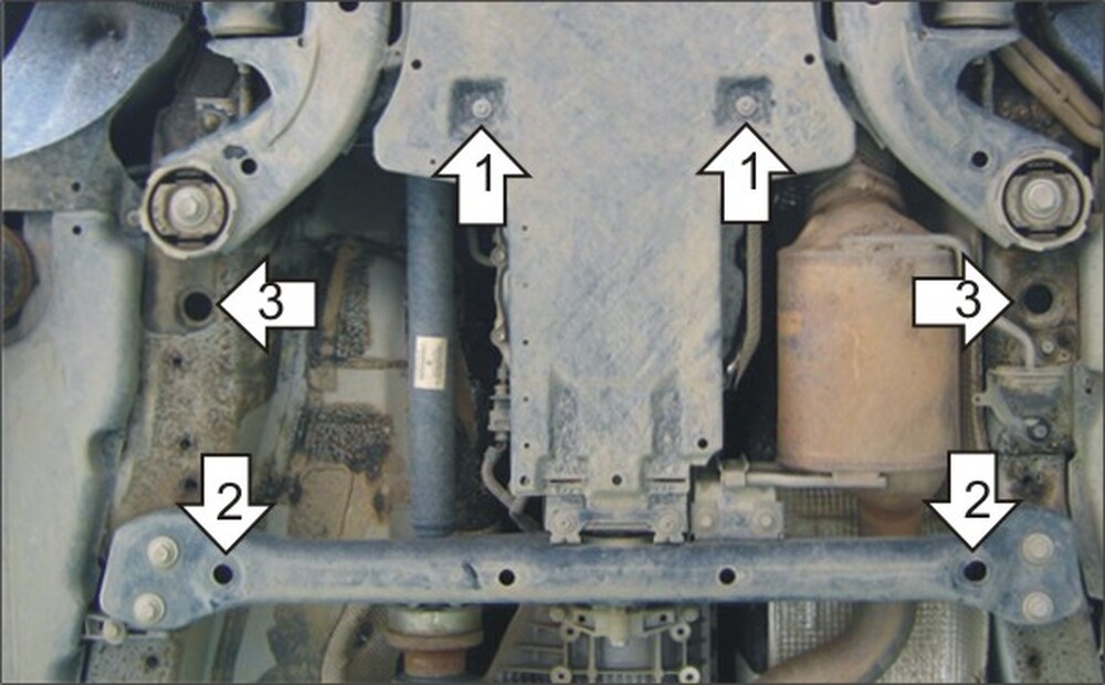 4. Закрепить защиту на штатные точки крепления болтами М6х30.