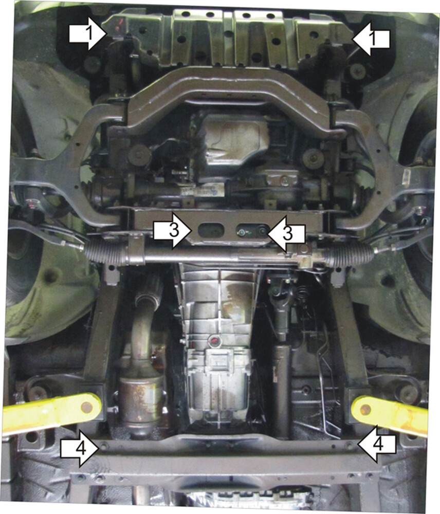 Защищаемые агрегаты: Двигатель, Передний дифференциал, Коробка переключения передач, Радиатор