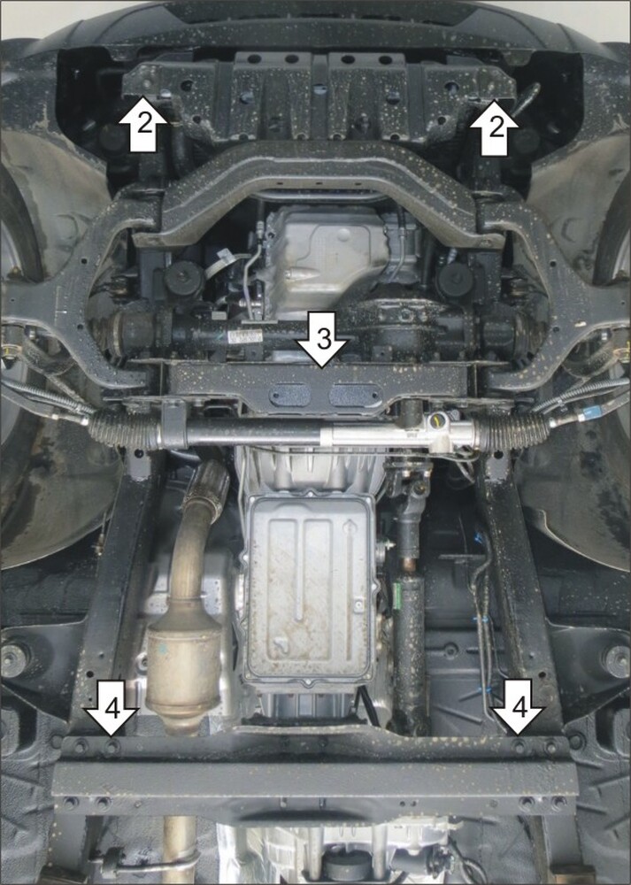 Защищаемые агрегаты: Двигатель, Передний дифференциал, Коробка переключения передач, Радиатор