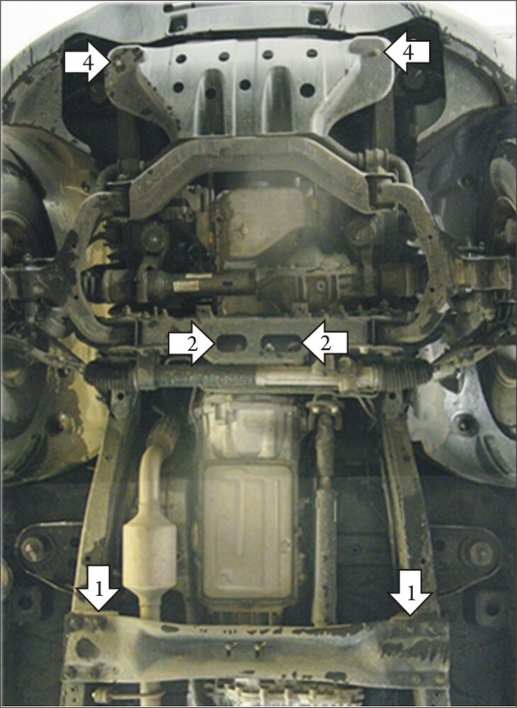 Защищаемые агрегаты: Двигатель, Передний дифференциал, Коробка переключения передач, Радиатор