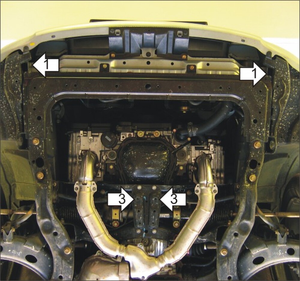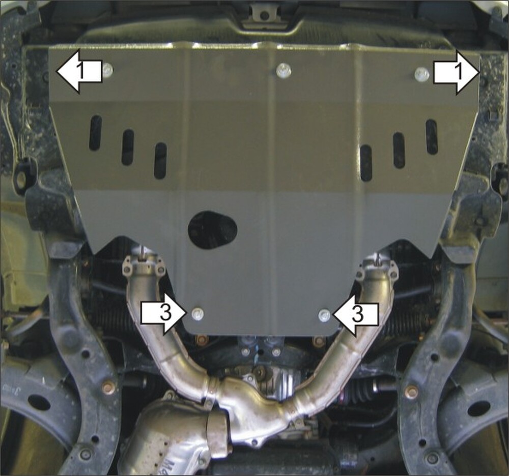 3. Установить передние точки крепления щита в штатные резбовые отверстия при помощи Болтов М8х30, Гр 8 и Ш 8.