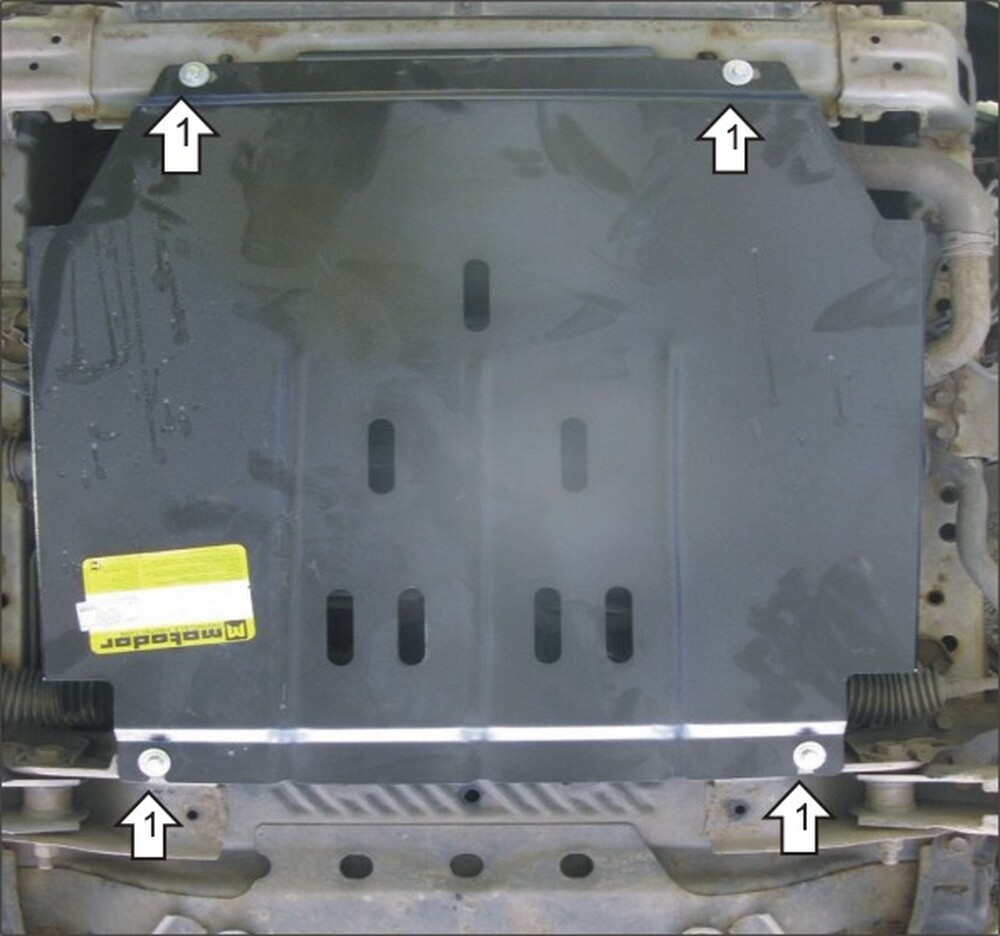 2. Установить Защиту в места крепления пыльника используя штатый крепеж или Болты М8х30, Шайбы и Гр. Шайбы 8.
