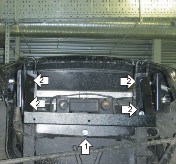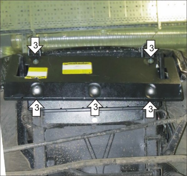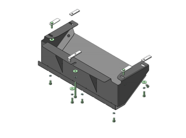 3. Установить на ранее закрепленный Каркас усиления Щит при помощи Болтов М10х20, Гр10 и Ш10
