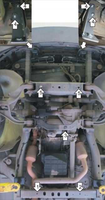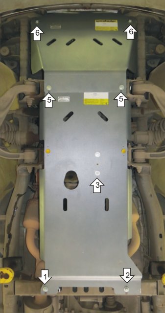 Защищаемые агрегаты: Двигатель, Передний дифференциал, Коробка переключения передач, Радиатор