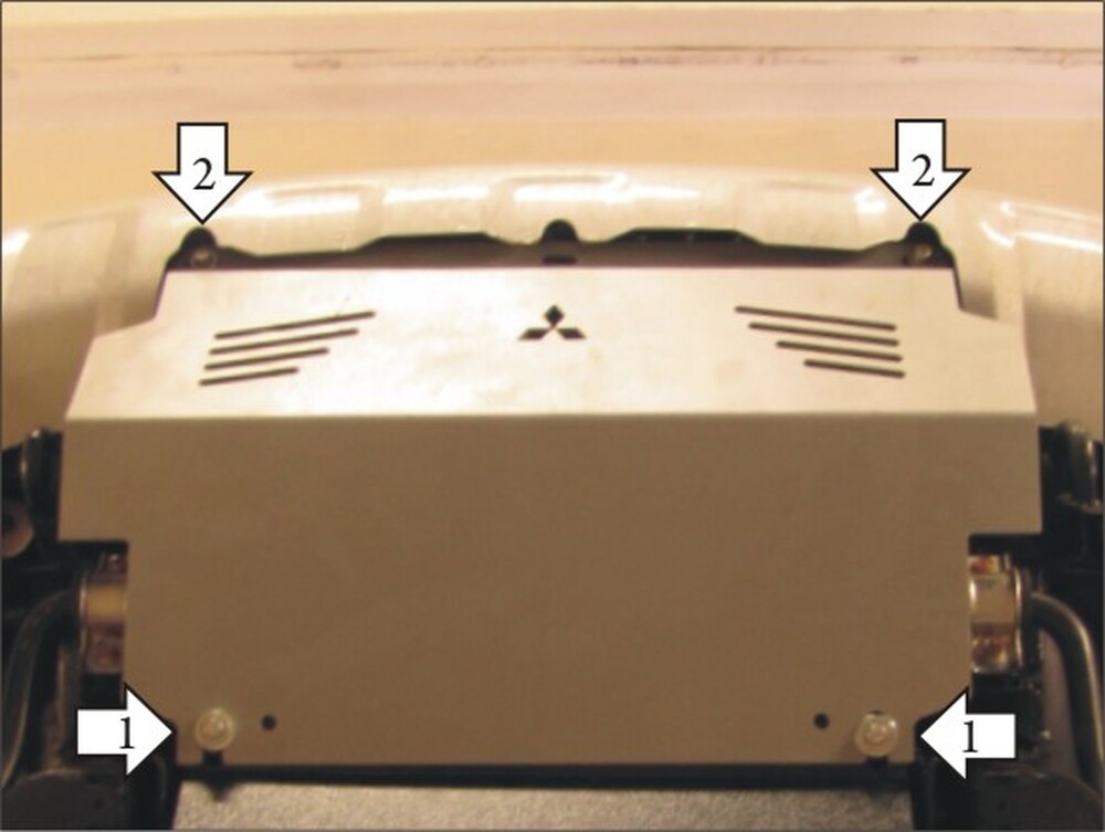 1. Снять штатную защиту. Установить в штатные резьбовые отверстия задние точки защиты с помощью 2-х Болтов М8х30.